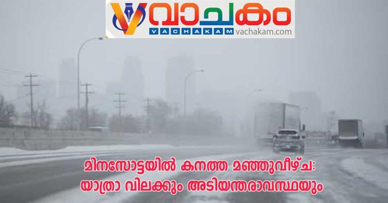 മിനസോട്ടയിൽ കനത്ത മഞ്ഞുവീഴ്ച: യാത്രാ വിലക്കും അടിയന്തരാവസ്ഥയും