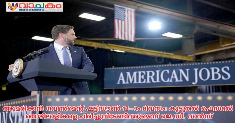 അമേരിക്കൻ ഗവൺമെന്റ് ഷട്ട്ഡൗൺ 12-ാം ദിവസം: കൂടുതൽ ഫെഡറൽ തൊഴിലാളികളെ പിരിച്ചുവിടേണ്ടിവരുമെന്ന് ജെ.ഡി. വാൻസ്