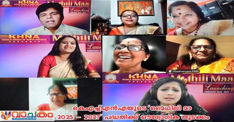 ഫ്ളോറിഡ: നവംബർ 7, വെള്ളിയാഴ്ച : കേരള ഹിന്ദുസ് ഓഫ് നോർത്ത് അമേരിക്കയുടെ (KHNA)യുടെ വനിതാ സംരംഭമായ മൈഥിലി മാ 2025 -2027യുടെ ഔദ്യോഗിക ഉദ്ഘാടനം സൂം മീറ്റിംഗിലൂടെ നടന്നു. വൈകുന്നേരം 7:00 PM ESTന് ആരംഭിച്ച പരിപാടിയിൽ അമേരിക്കയിലെയും ഇന്ത്യയിലെയും അംഗങ്ങൾ പങ്കുചേർന്നു, മാതൃത്വം, ആത്മീയത, സാംസ്കാരിക ഐക്യം എന്നിവയെ ആധാരമാക്കി.