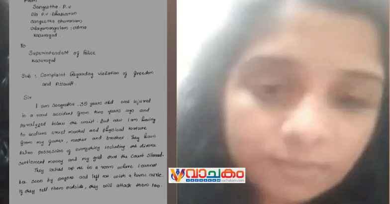 വാഹനാപകടത്തിൽ സം​ഗീതയുടെ അരയ്‌ക്ക് താഴെ തളർന്നിരുന്നു.  വിവാഹമോചനത്തിന് ശേഷം  ലഭിച്ച തുക മുഴുവൻ പിതാവും സഹോദരനും ചേർന്ന് കൈക്കലാക്കി. അതിനുശേഷം ചികിത്സപോലും കൃത്യമായി നൽകിയില്ല. പോയി ചാകാൻ’ പലതവണ ആവശ്യപ്പെട്ടതായും യുവതിയുടെ പരാതിയിൽ പറയുന്നു.