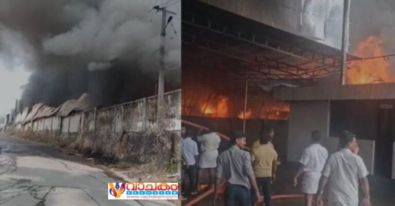 അതേസമയം, ആളപായമില്ലെന്നാണ് ലഭ്യമായ വിവരം. സമീപത്തെ വീടുകളിലേക്കും മറ്റും തീ പടരാതിരിക്കാനുള്ള നീക്കം തുടരുകയാണ്.വിവിധ യൂണിറ്റുകളിൽനിന്ന് ഫയർഫോഴ്സെത്തി തീ നിയന്ത്രണവിധേയമാക്കുകയാണ്. അപകട കാരണം ഷോർട്ട് സർക്യൂട്ടെന്നാണ് പ്രാഥമിക നിഗമനം.
