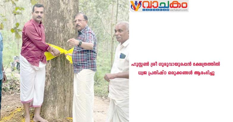 ഹൂസ്റ്റൺ: ഹൂസ്റ്റണിലെ ശ്രീ ഗുരുവായൂരപ്പൻ ക്ഷേത്രത്തിൽ ധ്വജ പ്രതിഷ്ഠാ മഹോത്സവത്തിനായുള്ള ഒരുക്കങ്ങൾ ഭക്തിപൂർവ്വം ആരംഭിച്ചു. ധ്വജസ്ഥംഭ നിർമ്മാണ പ്രക്രിയയുടെ ഭാഗമായ തേക്ക് മരം വെട്ടും ചടങ്ങ് (Weed Cut / Ting Ceremony) ഡിസംബർ 5, 2025ന് കേരളത്തിലെ തൊടുപുഴ സമീപത്തെ കരിംകുന്നം പ്രദേശത്ത് വച്ച് ഭക്തിസാന്ദ്രമായി നടത്തപ്പെടും.