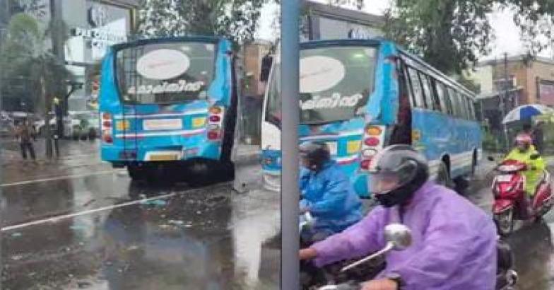 മാങ്കാവ് ഭാഗത്തേക്ക് പോവുകയായിരുന്ന ബസ് എതിരെ വന്ന ബസിന്റെ ഒരു വശത്തിടിച്ചശേഷം നിയന്ത്രണം വിട്ട് റോഡരികിലെ മരത്തില് ഇടിച്ചാണ് അപകടമുണ്ടായത്.
