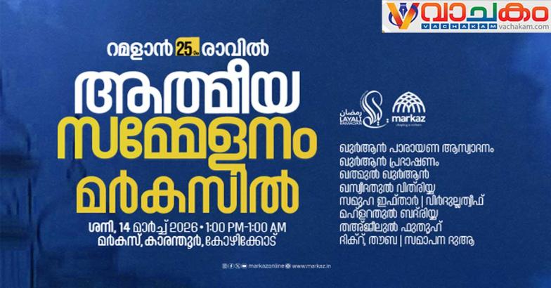 കോഴിക്കോട്: ആയിരം മാസങ്ങളുടെ പുണ്യം തേടി റമസാനിലെ അവസാന ദിനങ്ങളിൽ ആയിരക്കണക്കിന് വിശ്വാസികൾ സംഗമിക്കുന്ന ആത്മീയ സമ്മേളനം ശനിയാഴ്ച (25ാം രാവ് മാർച്ച് 14) കാരന്തൂർ മർകസിൽ നടക്കും. ശനിയാഴ്ച ഉച്ചക്ക് ഒന്നു മുതൽ ഞായർ പുലർച്ചെ ഒന്നു വരെ നടക്കുന്ന ആത്മീയ സമ്മേളനത്തിന് പ്രശസ്ത പണ്ഡിതരും ആത്മീയ നേതാക്കളും നേതൃത്വം നൽകും. ഇന്ത്യൻ ഗ്രാൻഡ് മുഫ്തി കാന്തപുരം എ.പി. അബൂബക്കർ മുസ്‌ലിയാരുടെ വാർഷിക റമളാൻ പ്രഭാഷണവും അനുഗ്രഹ പ്രാർത്ഥനയുമാണ് സമ്മേളനത്തിന്റെ മുഖ്യ ആകർഷണീയത.