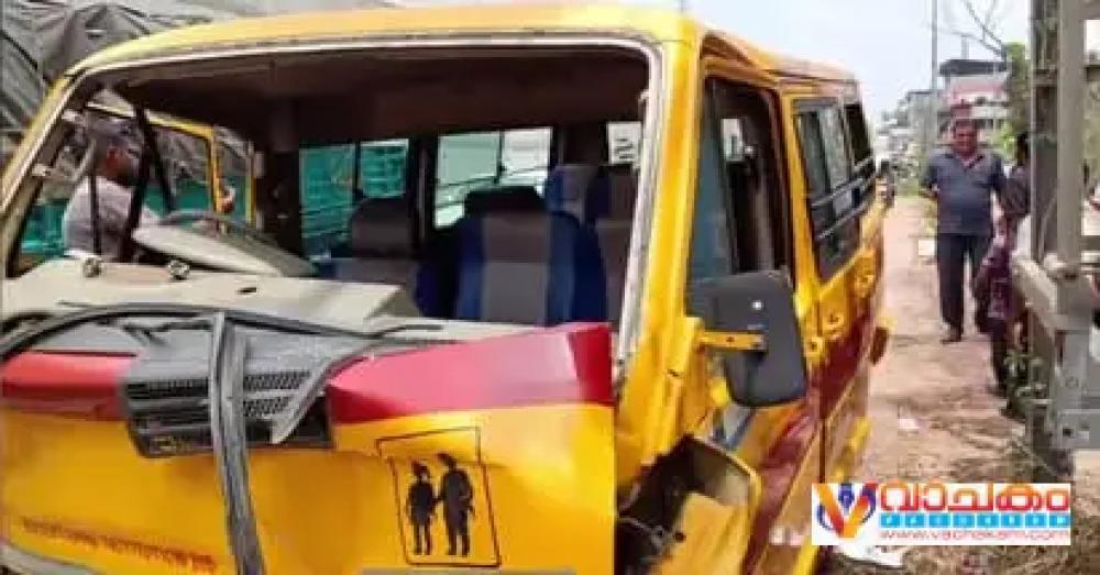 അയിരൂർ എംജിഎം സ്കൂളിലെ ബസാണ് ഇടിച്ചത്.അപകട സമയത്ത് 7 അധ്യാപകരാണ് ബസ്സിൽ ഉണ്ടായിരുന്നത്. പരിക്കേറ്റ അധ്യാപകരെ പാരിപ്പള്ളി മെഡിക്കൽ കോളേജ് ആശുപത്രിയില് പ്രവേശിപ്പിച്ചിട്ടുണ്ട്.