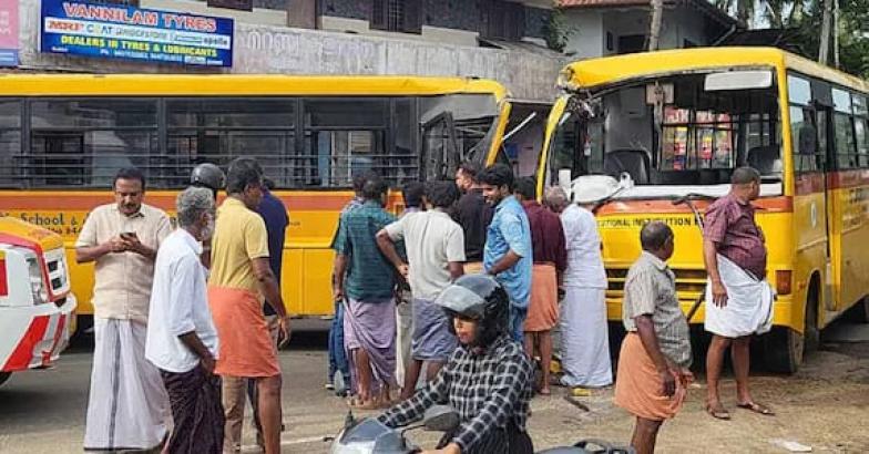 ഇലഞ്ഞി സെന്റ് ഫിലോമിനാസ് സ്കൂളിലെ ബസും കടുത്തുരുത്തി പാഴുത്തുരുത്ത് എസ്കെപിഎസ് സ്കൂളിലെ ബസുമാണ് കൂട്ടിയിടിച്ചത്.വൈകിട്ട് സ്കൂൾ വിട്ട ശേഷം വിദ്യാർഥികളെ വീട്ടിലേക്ക് മടക്കിക്കൊണ്ടു പോകവേ ആയിരുന്നു അപകടം നടന്നത്.