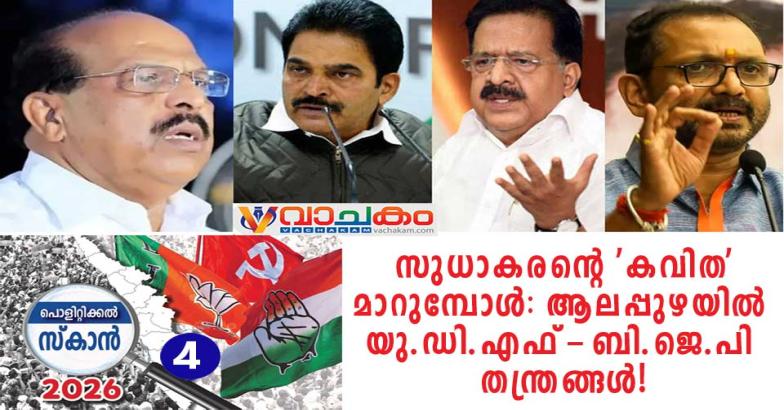 നമസ്കാരം! ആലപ്പുഴയിലെ ചുവപ്പലോകത്ത് 2026 മാർച്ച് 4ന് രൂപപ്പെട്ട സുധാകര ഗ്രഹണത്തിന്റെ രാഷ്ട്രീയ പ്രത്യാഘാതങ്ങൾ വിശകലനം ചെയ്യുന്ന രാഷ്ട്രീയ ചാണക്യൻ ഇതാ.