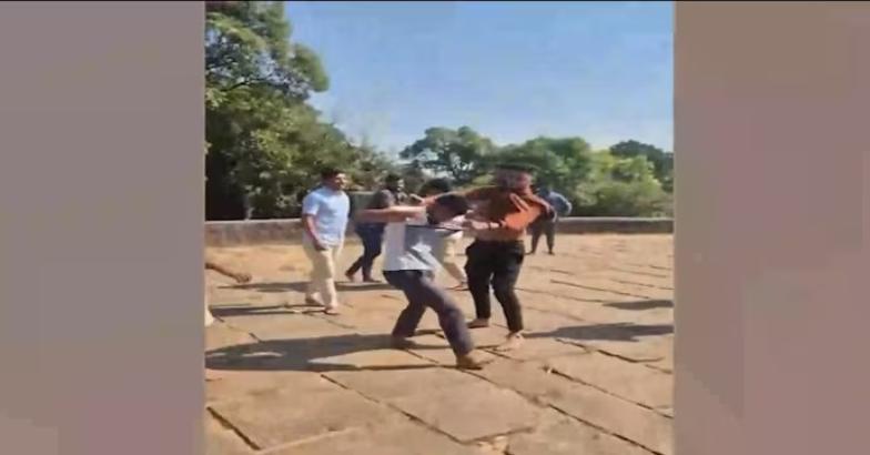 ക്ഷേത്ര പരിസരത്ത് പ്രീ-വെഡിംഗ് ഫോട്ടോഷൂട്ട് നടത്തിക്കൊണ്ടിരുന്ന സംഘത്തിലെ ഫോട്ടോഗ്രാഫർമാർ ഷൂ ധരിച്ച് അകത്തുകയറി എന്ന് ആരോപിച്ചാണ് നാട്ടുകാർ രംഗത്തെത്തിയത്. തർക്കം കൈയാങ്കളിയിൽ കലാശിക്കുകയായിരുന്നു.5 ഫോട്ടോഗ്രാഫർമാർക്ക് മർദനമേറ്റു. ഇവരെ താലൂക്ക് ആശുപത്രിയിൽ പ്രവേശിപ്പിച്ചു.