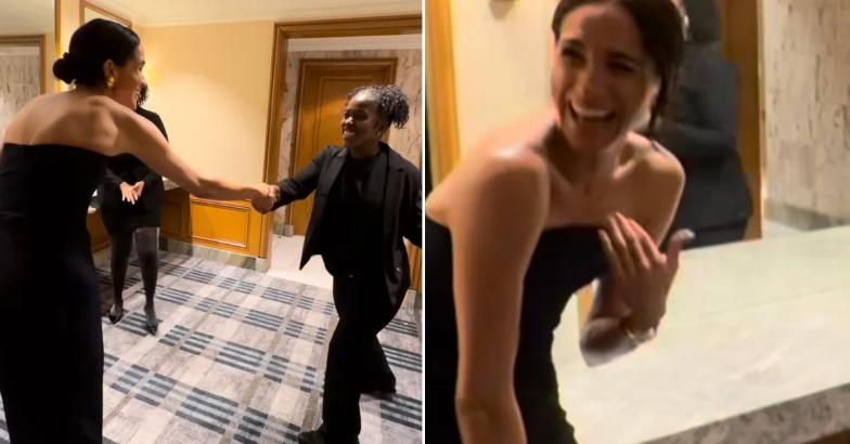 പരിപാടിക്കിടെ റെസ്റ്റ് റൂം ഏരിയയിലേക്ക് നടന്നുപോയ മേഗൻ, അവിടെ ടിക് ടോക് വീഡിയോ എടുത്തുകൊണ്ടിരുന്ന യുവതികളെ കണ്ട് അമ്പരന്നു. "നിങ്ങളുടെ പാർട്ടിക്കിടയിലേക്ക് അപ്രതീക്ഷിതമായി വന്നതിന് ക്ഷമിക്കണം, പക്ഷേ ഇത് പങ്കുവെക്കാതിരിക്കാൻ കഴിഞ്ഞില്ല," എന്ന് തമാശയായി മേഗൻ കുറിച്ചു. വീഡിയോയിൽ യുവതികളുടെ പ്രകടനം ചിരിച്ചുകൊണ്ട് നോക്കിനിൽക്കുന്ന മേഗനെയും എല്ലാവരും ചേർന്ന് ചിരിക്കുന്നതുമായ ദൃശ്യങ്ങളാണുള്ളത്. ഒരു ഗൗരവമേറിയ ചടങ്ങിനിടയിൽ അപ്രതീക്ഷിതമായി ഉണ്ടായ ഈ നിമിഷം പരിപാടിയുടെ ഹൈലൈറ്റായി മാറി.