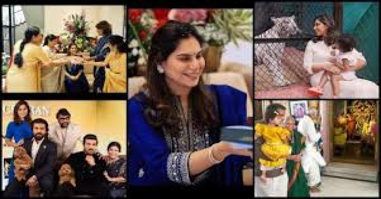 നീല കുർത്തയണിഞ്ഞ രാം ചരൺ അതിഥികളുമായി സൗഹൃദം പങ്കുവയ്ക്കുന്നതിനോടൊപ്പം മകൾ ക്ലിൻ കാരയെയും വളർത്തുനായ റൈമിനെയും ചേർത്ത് പിടിക്കുന്നതും ശ്രദ്ധേയമായി.