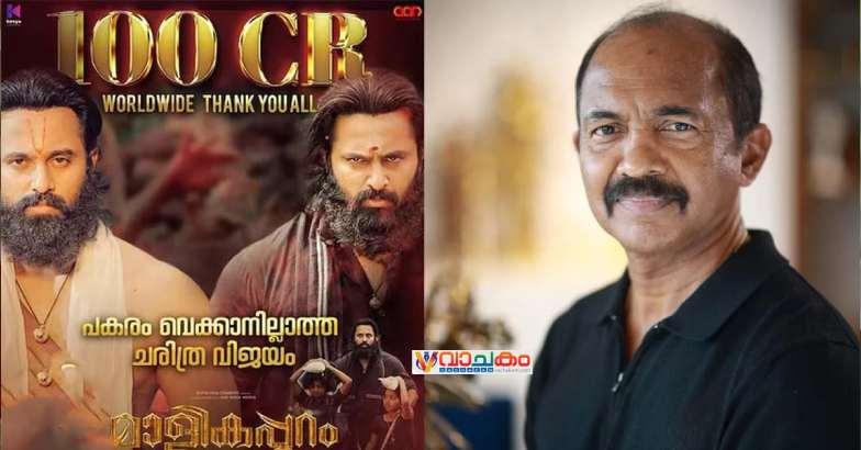 ചിത്രം 100 കോടി രൂപ നേടി എന്ന പോസ്റ്ററുകളും അന്ന് പുറത്തുവന്നിരുന്നു. എന്നാൽ ചിത്രം 100 കോടി രൂപ നേടിയിട്ടില്ലെന്ന് നിർമാതാവ് വേണു കുന്നപ്പിള്ളി വ്യക്തമാക്കുകയും ചെയ്തു. 75 കോടി രൂപയാണ് മാളികപ്പുറത്തിന്റെ കളക്ഷനെന്നും അദ്ദേഹം പറഞ്ഞിരുന്നു.