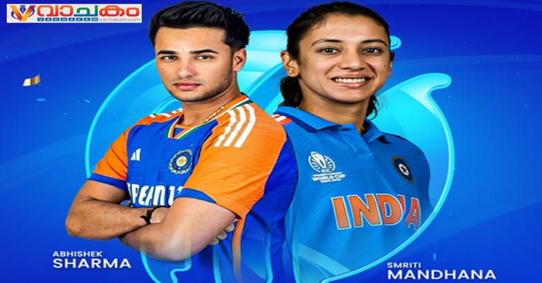 ഏഷ്യകപ്പിലെയും ഓസ്ട്രേലിയക്കെതിരായ ഏകദിന പരമ്പരയിലെയും മികച്ച പ്രകടനങ്ങൾക്ക് പിന്നാലെ അഭിഷേക് ശർമ്മയെയും സ്മൃതി മന്ദാനയെയും സെപ്തംബർ 2025ലെ ഐ.സി.സി പ്ലെയർ ഓഫ് ദി മന്തായി തിരഞ്ഞെടുത്തു.