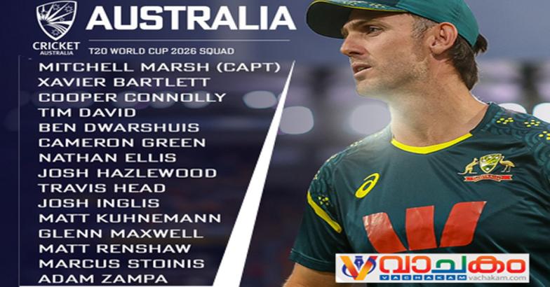 ഓസ്ട്രേലിയ ടി20 ലോകകപ്പ് മത്സരങ്ങൾക്കുള്ള 15 അംഗ ടീമിനെ പ്രഖ്യാപിച്ചു. പരിക്ക് ഭേദമാകാത്തതിനെ തുടർന്ന് പാറ്റ് കമ്മിൻസിനെ ഒഴിവാക്കി. മിച്ചൽ മാർഷ് ടീമിനെ നയിക്കും. കമ്മിൻസിന് പകരം ബെൻ ഡ്വാർഷുസിനെ ടീമിൽ ഉൾപ്പെടുത്തിയിട്ടുണ്ട്. ടോപ്പ് ഓർഡർ ബാറ്റർ മാത്യു ഷോർട്ടിനും ടീമിൽ ഇടം നേടാനായിട്ടില്ല.