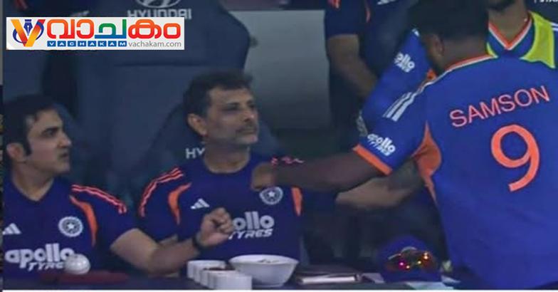 അഭിഷേകിന് നിലയുറപ്പിക്കാൻ സമയം നൽകി തുടക്കത്തിലെ തകർത്തടിച്ച് സമ്മർദ്ദം ഒഴിവാക്കിയത് സഞ്ജുവായിരുന്നു. അഭിഷേക് വെടിക്കെട്ടിന് തിരികൊളുത്തിയതിന് പിന്നാലെയായിരുന്നു മുസർബാനിയുടെ സ്ലോ ബോളിൽ സഞ്ജു പുറത്തായത്. എന്നാൽ ഡഗ് ഔട്ടിലെത്തിയ സഞ്ജുവിനെ കോച്ച് ഗൗതം ഗംഭീറും ബൗളിംഗ് കോച്ച് മോർണി മോർക്കലുമെല്ലാം അഭിനന്ദിക്കുന്നതും കാണാമായിരുന്നു. ലോകകപ്പിൽ കഴിഞ്ഞ മത്സരങ്ങളിലെല്ലാം ആദ്യ ഓവറുകളിൽ വിക്കറ്റ് നഷ്ടമായി സമ്മർദ്ദത്തിലായ ഇന്ത്യക്ക് മികച്ച അടിത്തറയിട്ടതിനായിരുന്നു സഞ്ജുവിനെ പരിശീലകർ അഭിനന്ദിച്ചത്.