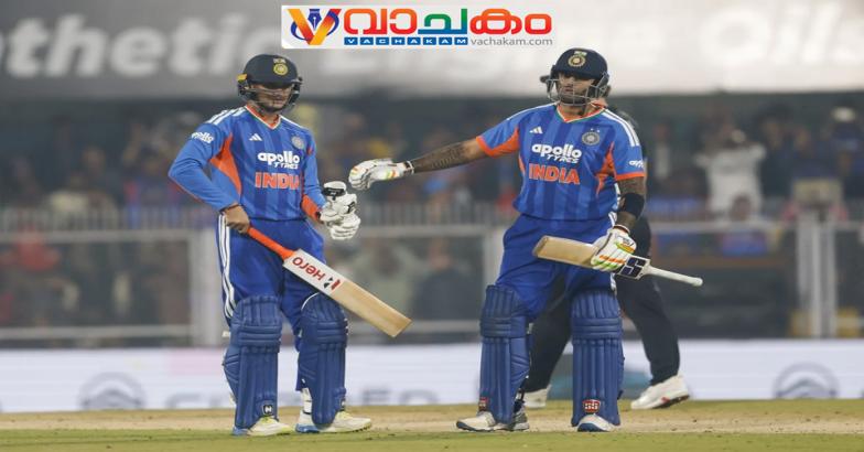 അർദ്ധസെഞ്ച്വറികൾ നേടിയ അഭിഷേക് ശർമ്മയും (20 പന്തുകളിൽ ഏഴുഫോറും അഞ്ചുസിക്സുമടക്കം 68 റൺസ്), നായകൻ സൂര്യകുമാർ യാദവും (26 പന്തുകളിൽ ആറുഫോറും മൂന്ന് സിക്സുമടക്കം 57 റൺസ്), 13 പന്തുകളിൽ 28 റൺസ് നേടിയ ഇഷാൻ കിഷനും ചേർന്നാണ് ഇന്ത്യയ്ക്ക് വിജയം നൽകിയത്. സൂര്യയുടെയും അഭിഷേകിന്റെയും പരമ്പരയിലെ രണ്ടാം അർദ്ധസെഞ്ച്വറിയാണിത്. സൂര്യ കഴിഞ്ഞമത്സരത്തിലും അഭിഷേക് ആദ്യമത്സരത്തിലും അർദ്ധസെഞ്ച്വറി നേടിയിരുന്നു.