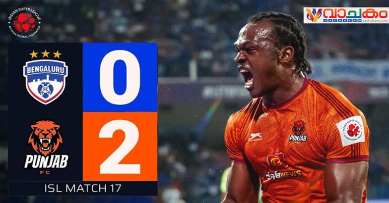 ഇന്ത്യൻ സൂപ്പർ ലീഗിൽ ബംഗ്ളൂരു എഫ്.സിയെ തോൽപ്പിച്ച് പഞ്ചാബ് എഫ്.സി. ബംഗ്ളൂരുവിലെ തട്ടകമായ ശ്രീ കണ്ഠീരവ സ്റ്റേഡിയത്തിൽ നടന്ന മത്സരത്തിൽ എതിരില്ലാത്ത രണ്ട് ഗോളുകൾക്കായിരുന്നു പഞ്ചാബിന്റെ ജയം.