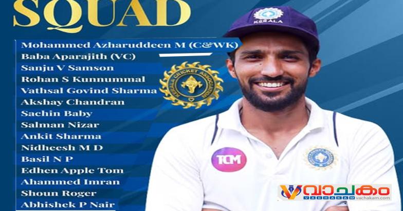 രഞ്ജി ട്രോഫിക്കുള്ള കേരള ക്രിക്കറ്റ് ടീം: മുഹമ്മദ് അസ്ഹറുദ്ദീൻ എം (ക്യാപ്ടൻ), ബാബാ അപരാജിത്ത് (വിസി), സഞ്ജു വി സാംസൺ, രോഹൻ എസ് കുന്നുമ്മൽ, വത്സൽ ഗോവിന്ദ് ശർമ്മ, അക്ഷയ് ചന്ദ്രൻ, സച്ചിൻ ബേബി, സൽമാൻ നിസാർ, അങ്കിത് ശർമ്മ, എം.ഡി നിധീഷ്, ബേസിൽ എൻ.പി, ഏദൻ ആപ്പിൾ ടോം, അഹമ്മദ് ഇമ്രാൻ, ഷോൺ റോജർ, അഭിഷേക് പി നായർ.