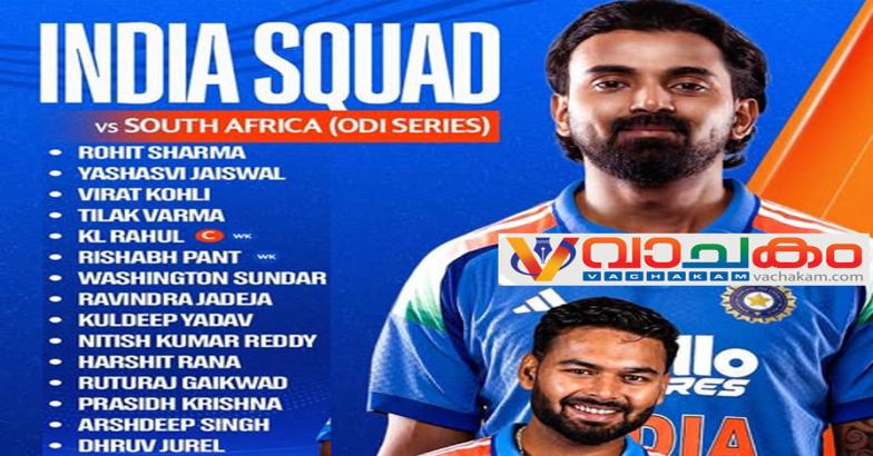 പരിക്കേറ്റ നായകൻ ശുഭ്മൻ ഗില്ലിന്റെ അസാന്നിധ്യത്തിൽ ദക്ഷിണാഫ്രിക്കക്കെതിരായ ഏകദിന പരമ്പരയിൽ കെ.എൽ. രാഹുൽ ഇന്ത്യയെ നയിക്കും. ഋതുരാജ് ഗെയിക്വാദ്, രവീന്ദ്ര ജഡേജ, റിഷഭ് പന്ത്, തിലക് വർമ്മ എന്നിവർ സ്ക്വാഡിൽ തിരിച്ചെത്തി. പന്താണ് ടീമിന്റെ ഉപനായകൻ.
