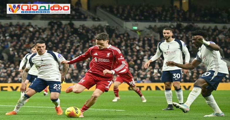 ടോട്ടനം ഹോട്ട്സ്പർ സ്റ്റേഡിയത്തിൽ നടന്ന ആവേശകരമായ പ്രീമിയർ ലീഗ് പോരാട്ടത്തിൽ ടോട്ടനത്തെ ഒന്നിനെതിരെ രണ്ട് ഗോളുകൾക്ക് തകർത്ത് ലിവർപൂൾ. രണ്ട് ചുവപ്പ് കാർഡുകൾ കണ്ട നാടകീയമായ മത്സരത്തിൽ, ഒമ്പത് പേരായി ചുരുങ്ങിയിട്ടും അവസാന നിമിഷം വരെ പൊരുതിയ ശേഷമാണ് ടോട്ടനം കീഴടങ്ങിയത്. ഈ വിജയത്തോടെ 29 പോയിന്റുമായി ലിവർപൂൾ പട്ടികയിൽ അഞ്ചാം സ്ഥാനത്തേക്കുയർന്നപ്പോൾ, 22 പോയിന്റുള്ള ടോട്ടനം 13-ാം സ്ഥാനത്തേക്ക് പിന്തള്ളപ്പെട്ടു.