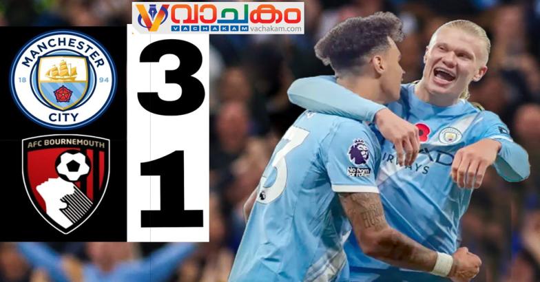 ഇംഗ്ലീഷ് പ്രീമിയർ ലീഗിൽ സ്വന്തം മൈതാനത്ത് ഒന്നിനെതിരെ മൂന്നു ഗോളുകൾക്ക് ബോർൺമൗതിനെ തോൽപ്പിച്ചു മാഞ്ചസ്റ്റർ സിറ്റി. ജയത്തോടെ സിറ്റി ലീഗിൽ രണ്ടാം സ്ഥാനത്തേക്കും കയറി. സീസണിൽ മികച്ച ഫോമിൽ കളിക്കുന്ന ഏർലിങ് ഹാളണ്ട് നേടിയ ഇരട്ടഗോളുകളാണ് സിറ്റിക്ക് ജയം സമ്മാനിച്ചത്. സീസണിൽ 10 കളികളിൽ നിന്നു 12 ഗോളുകൾ ഹാളണ്ട് ഇതിനകം നേടിക്കഴിഞ്ഞു. മത്സരത്തിൽ 17-ാമത്തെ മിനിറ്റിൽ റയാൻ ചെർക്കിയുടെ ത്രൂ ബോളിൽ നിന്നും അതിമനോഹരമായൊരു ഗോൾ കണ്ടെത്തി ഹാളണ്ട് സിറ്റിയുടെ ഗോൾ വേട്ട ആരംഭിച്ചു.
