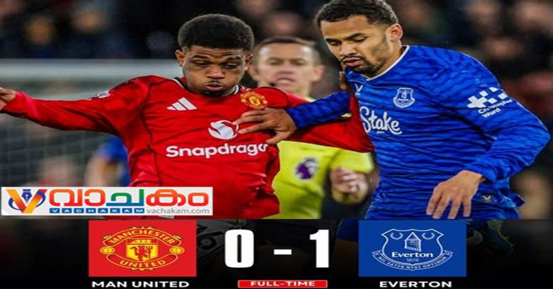 ഇംഗ്ലീഷ് പ്രീമിയർ ലീഗ് മാഞ്ചസ്റ്റർ യുണൈറ്റഡിന് ദയനീയ പരാജയം. ഇന്ന് ഓൾഡ്ട്രാഫോർഡിൽ നടന്ന മത്സരത്തിൽ എവർട്ടൺ മത്സരത്തിന്റെ ഭൂരിഭാഗം സമയവും 10 പേരുമായി കളിച്ച് മാഞ്ചസ്റ്റർ യുണൈറ്റഡിനെ 1-0 എന്ന സ്കോറിന് തോൽപ്പിച്ചു.