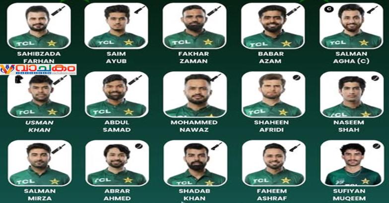 പാകിസ്ഥാൻ ടി20 ലോകകപ്പ് ടീം: സൽമാൻ അലി ആഗ (ക്യാപ്ടൻ), അബ്രാർ അഹമ്മദ്, ബാബർ അസം, ഫഹീം അഷ്രഫ്, ഫഖർ സമാൻ, ഖവാജ മുഹമ്മദ് നഫായ് (വിക്കറ്റ്കീപ്പർ), മുഹമ്മദ് നവാസ്, മുഹമ്മദ് സൽമാൻ മിർസ, നസീം ഷാ, സാഹിബ്സാദ ഫർഹാൻ (വിക്കറ്റ് കീപ്പർ), സയിം അയൂബ്, ഷഹീൻ ഖാൻ, ഷഹീൻ അയൂബ് (ംസ) ഉസ്മാൻ താരിഖ്.