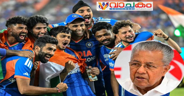 കളിക്കളത്തിലെ വീറും പതറാത്ത ആത്മവിശ്വാസവുമാണ് കിരീടം വീണ്ടും ഇന്ത്യയിലേക്ക് എത്തിച്ചതെന്ന് മുഖ്യമന്ത്രി പറഞ്ഞു. ഈ ലോകകപ്പ് വിജയത്തിൽ മലയാളി താരം സഞ്ജു സാംസൺ കാഴ്ചവെച്ച ഗംഭീര പ്രകടനം ഒരോ മലയാളിയെയും സംബന്ധിച്ചു ആവേശകരമാണെന്നും അദ്ദേഹം കൂട്ടിച്ചേർത്തു.