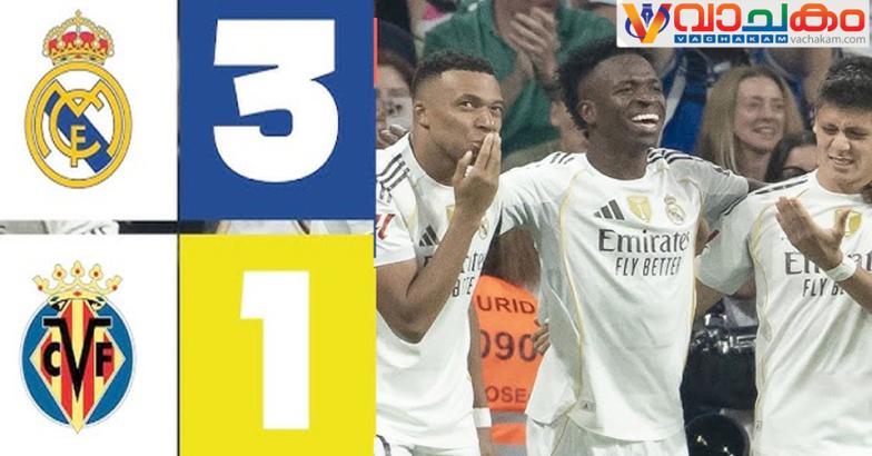 വിയ്യാറയലിനെ ഒന്നിനെതിരെ മൂന്ന് ഗോളുകൾക്ക് തോൽപ്പിച്ച് റയൽ മാഡ്രിഡ് ലാ ലിഗ തലപ്പത്ത്. വിനീഷ്യസ് ജൂനിയർ ഇരട്ട ഗോൾ നേടിയപ്പോൾ കീലിയൻ എംബാപ്പെയും ഗോൾ കണ്ടെത്തി.
