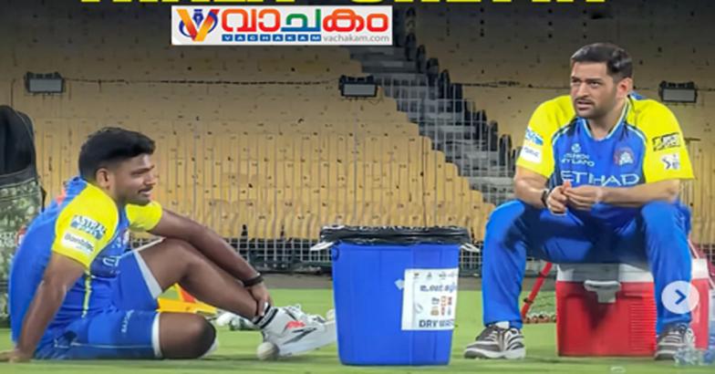 ഐ.പി.എല്ലിന് മുന്നോടിയായി ആരാധകരെ ആവേശത്തിലാക്കി ചെന്നൈ സൂപ്പർ കിംഗ്സ് ക്യാമ്പിൽ ധോണിയും സഞ്ജുവും തമ്മിലുള്ള ദീർഘസംഭാഷണം. ഐ.പി.എൽ ചരിത്രത്തിലെ തന്നെ വമ്പൻ ട്രേഡുകളിലൊന്നിലൂടെ രാജസ്ഥാൻ റോയൽസിൽ നിന്ന് ചെന്നൈയിലെത്തിയ മലയാളി താരം സഞ്ജു സാംസൺ ഇന്നലെയാണ് ചെന്നൈ ടീമിനൊപ്പം ചേർന്നത്. ഇതിന് പിന്നാലെയാണ് പരിശീലനത്തിനിടെ എം.എസ് ധോണിയും സഞ്ജുവും മാറിയിരുന്ന് ദീർഘനേരം സംസാരിക്കുന്ന വീഡിയോ പുറത്തുവന്നത്.