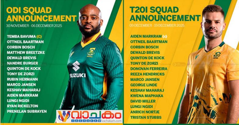 ഇന്ത്യയ്ക്കെതിരെ നവംബർ 30 മുതൽ ഡിസംബർ 19 വരെ നടക്കുന്ന ഏകദിന, ടി20ഐ പരമ്പരകൾക്കുള്ള ദക്ഷിണാഫ്രിക്കയുടെ മികച്ച സ്ക്വാഡുകളെയാണ് ദക്ഷിണാഫ്രിക്ക പ്രഖ്യാപിച്ചത്.