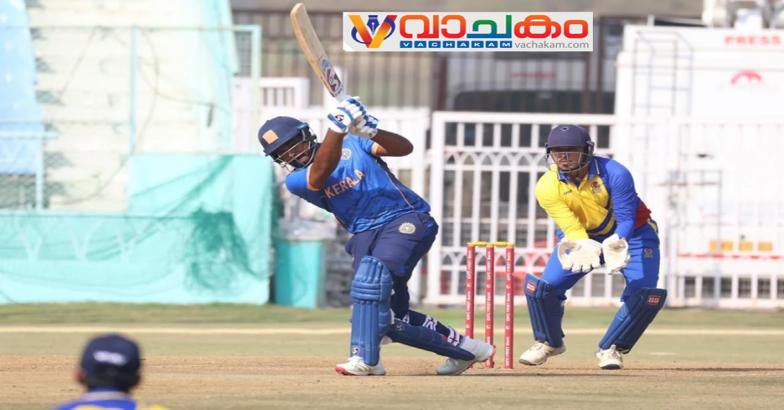 മറുപടി ബാറ്റിങ്ങിന് ഇറങ്ങിയ കേരളത്തിന് ക്യാപ്ടൻ സഞ്ജു സാംസനും രോഹൻ കുന്നുമ്മലും ചേർന്ന് തകർപ്പൻ തുടക്കം നൽകി. ഇരുവരും ചേർന്ന് വെറും 26 പന്തുകളിൽ 72 റൺസാണ് അടിച്ചു കൂട്ടിയത്. 15 പന്തുകളിൽ രണ്ട് ഫോറും അഞ്ച് സിക്സുമടക്കം 43 റൺസ് നേടിയാണ് സഞ്ജു മടങ്ങിയത്. രോഹൻ 17 പന്തുകളിൽ മൂന്ന് ഫോറും രണ്ട് സിക്സുമടക്കം 33 റൺസെടുത്തു.
