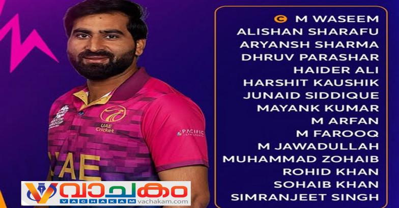 അയർലൻഡിനെതിരായ ടി20 പരമ്പരയിലെ മോശം പ്രകടനത്തെത്തുടർന്ന് ബാസിൽ ഹമീദ്, രാഹുൽ ചോപ്ര എന്നിവരെ ടീമിൽ നിന്ന് ഒഴിവാക്കി. പരിചയസമ്പന്നനായ മുഹമ്മദ് വസീമാണ് ലോകകപ്പിൽ യുഎഇയെ നയിക്കുന്നത്. 2022ലെ ലോകകപ്പ് ടീമിലുണ്ടായിരുന്ന വസീം, അലിഷാൻ ഷറഫു, ജുനൈദ് സിദ്ധിഖ് എന്നിവർ മാത്രമാണ് ഇത്തവണയും ടീമിൽ ഇടംപിടിച്ചത്.