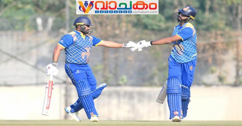 എന്നാൽ പിന്നീട് ഒന്നിച്ച പടിക്കലും കരുൺ നായരും കേരളത്തിന് മറ്റ് അവസരങ്ങളൊന്നും നൽകിയില്ല. 137 പന്തിൽ 12 ഫോറുകളും മൂന്ന് സിക്സറുമടക്കം 124 റൺസെടുത്ത പടിക്കലിനെ 40 -ാം ഓവറിൽ എം.ഡി. നിതീഷ് പുറത്താക്കി. എങ്കിലും ഒരു വശത്ത് ഉറച്ചുനിന്ന കരുൺ നായർ 130 പന്തിൽ 14 ഫോറുകൾ സഹിതം 130 റൺസുമായി പുറത്താകാതെ നിന്ന് ടീമിനെ വിജയത്തിലെത്തിച്ചു. സ്മരൻ ആർ 25 റൺസുമായി കരുണിന് മികച്ച പിന്തുണ നൽകി. കേരളത്തിനായി ബോളിംഗിൽ എം.ഡി. നിതീഷ്, അഖിൽ സ്കറിയ എന്നിവർ ഓരോ വിക്കറ്റ് വീതം വീഴ്ത്തിയെങ്കിലും മറ്റ് ബൗളർമാർക്കൊന്നും കാര്യമായ സ്വാധീനം ചെലുത്താനായില്ല.