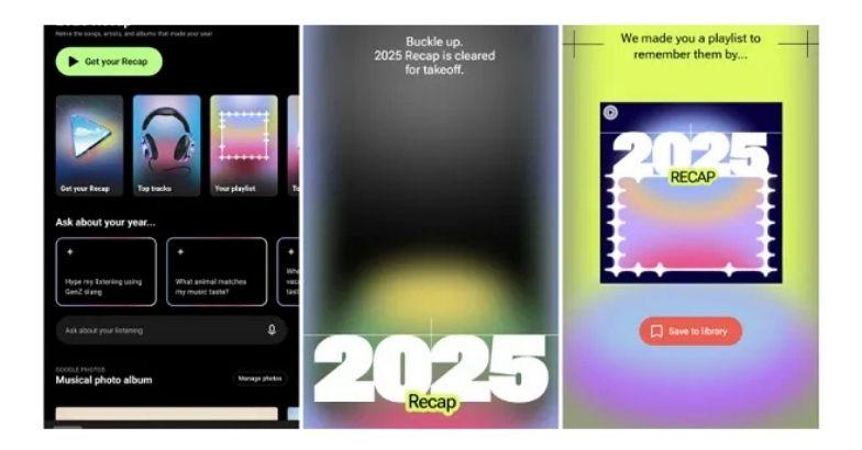 പ്രശസ്ത മ്യൂസിക് സ്ട്രീമിങ് പ്ലാറ്റ്ഫോമായ യൂട്യൂബ് മ്യൂസിക് 2025-ലെ തങ്ങളുടെ വാർഷിക ശ്രവണാനുഭവങ്ങളുടെ സംഗ്രഹമായ 'റീക്യാപ്' (Recap) അവതരിപ്പിച്ചു. സ്പോട്ടിഫൈയുടെ ജനപ്രിയമായ 'റാപ്പ്ഡ്' (Wrapped) ഫീച്ചറിന് സമാനമായി, ഒരു വർഷം മുഴുവൻ ഉപയോക്താവ് കേട്ട സംഗീതത്തിന്റെയും പോഡ്കാസ്റ്റുകളുടെയും വിശദാംശങ്ങൾ ഈ റീക്യാപ് വഴി അറിയാൻ സാധിക്കും. എന്നാൽ, ഇത്തവണ യൂട്യൂബ് ഒരുപടി മുന്നോട്ട് കടന്ന് ഇതിൽ നിർമ്മിത ബുദ്ധിയുടെ (AI) സാധ്യതകൾ കൂടി ഉൾപ്പെടുത്തിയിട്ടുണ്ട്.