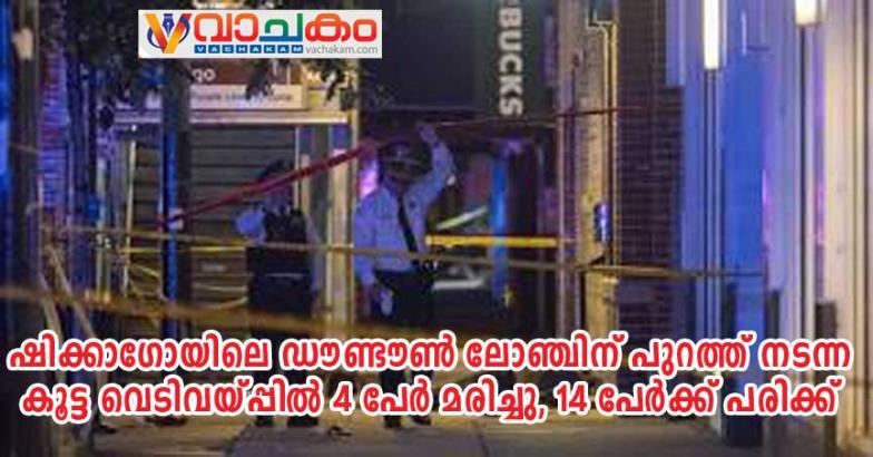 ഷിക്കാഗോ: ഷിക്കാഗോയിലെ തിരക്കേറിയ റിവർ നോർത്ത് അയൽപക്കത്തുള്ള ഒരു ലോഞ്ചിന് പുറത്ത് രാത്രിയിൽ നടന്ന കൂട്ട വെടിവയ്പ്പിൽ കുറഞ്ഞത് നാല് പേർ കൊല്ലപ്പെടുകയും 14 പേർക്ക് പരിക്കേൽക്കുകയും ചെയ്തതായി പോലീസ് പറഞ്ഞു.