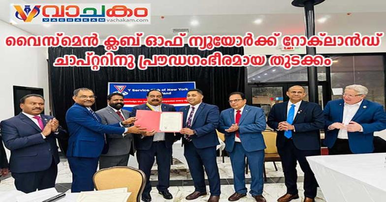 ന്യൂയോർക്ക്: വൈസ്‌മെൻ ക്ലബ് ഓഫ് ന്യൂയോർക്ക് റോക്‌ലാൻഡ് ചാപ്റ്ററിന്റെ ഉദ്ഘാടനം ഡിസംബർ 26-ാം തീയതി വെള്ളിയാഴ്ച വൈകുന്നേരം  4 മണിക്ക് ഓറഞ്ച്ബർഗിലെ സിത്താർ പാലസ് റെസ്റ്റോറെന്റിൽ വച്ചു പ്രൗഡഗംഭീരമായി  നടന്നു. സ്‌പോൺസറിംഗ് ക്ലബായ വെസ്റ്റ്ചസ്റ്റർ ചാപ്റ്റർ  പ്രസിഡന്റ് ജോസഫ് മാത്യൂസിന്റെ അധ്യക്ഷതയിൽ ചേർന്ന യോഗത്തിൽ വൈസ്‌മെൻ ഇന്റർനാഷണൽ യു.എസ്. ഏരിയ പ്രസിഡന്റ് ജോസഫ് കാഞ്ചമലയും മുൻ ഏരിയ പ്രസിഡന്റ് ഷാജു സാമും ചേർന്ന് പുതിയ അംഗങ്ങൾക്ക് സത്യവാചകം ചൊല്ലിക്കൊടുക്കുകയും പിൻഅണിയിക്കുകയും ചെയ്തു.