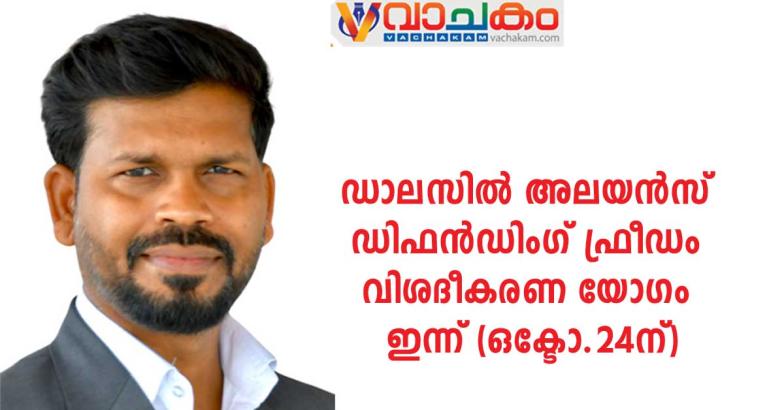 ഡാളസ് : ലോകത്തിലെ ഏറ്റവും വലിയ ക്രിസ്ത്യൻ നീതിന്യായ സംഘടനയായ അലയൻസ് ഡിഫൻഡിംഗ് ഫ്രീഡം (https://adflegal.org/about/), ഒക്ടോ. 24നു വിശദീകരണ യോഗം സംഘടിപ്പിക്കുന്നു. ഗാർലാൻഡ് ബ്രൗംസ് 5435 ബ്രോഡ്വേ ആഹ്റ,ഗാർലൻഡ് TX 75043) വെച്ച് വൈകീട്ട് 6:30ന് ചേരുന്ന യോഗത്തിൽ എ.ഡി.എഫ് ഓപ്പറേറ്റിംഗ് ഡയറക്ടർ ജോൺസൻ എം മുഖ്യ പ്രഭാഷകനായിരിക്കും.