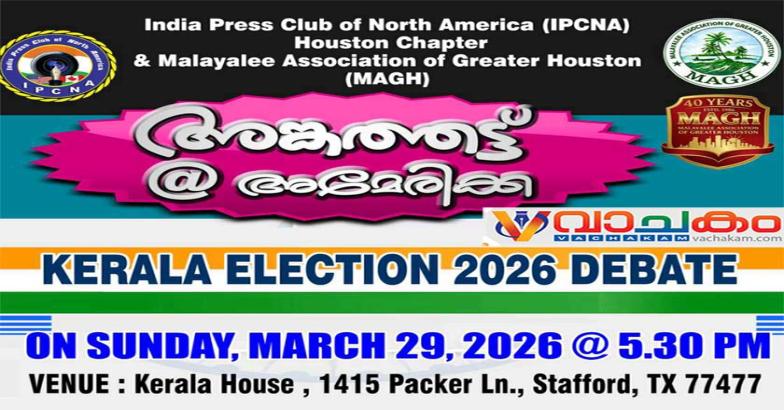 അങ്കത്തട്ട് @അമേരിക്ക : കേരള ഇലക്ഷൻ 2026 ഡിബേറ്റ് മാർച്ച് 29ന് ഞായറാഴ്ച ഹൂസ്റ്റണിൽ