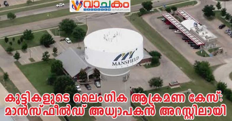 മാൻസ്ഫീൽഡ് (ടെക്സസ്): മാൻസ്ഫീൽഡ് ഇൻഡിപെൻഡന്റ് സ്കൂൾ ഡിസ്റ്റ്രിക്കിലെ ലെഗസി ഹൈസ്കൂളിൽ അധ്യാപകനും കോച്ചുമായ ഒരു വ്യക്തി കുട്ടികളുടെ ലൈംഗികാരോപണത്തിനും, കുട്ടി ലൈംഗിക ആക്രമണം, അനധികൃത ബന്ധം തുടങ്ങിയ നിരവധി കുറ്റങ്ങളാൽ അറസ്റ്റുചെയ്തു.