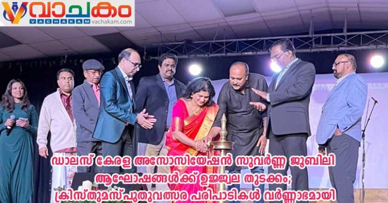 ഡാലസ്: കേരള അസോസിയേഷൻ ഓഫ് ഡാലസിന്റെ അൻപതാം വാർഷികാഘോഷങ്ങൾക്കും ക്രിസ്തുമസ് പുതുവത്സര പരിപാടികൾക്കും ജനുവരി 10ന് ഗാർലൻഡിലെ എം.ജി.എം ഓഡിറ്റോറിയത്തിൽ വർണ്ണാഭമായ തുടക്കം. 'സുവർണ്ണ ജൂബിലി' വർഷത്തിലേക്ക് പ്രവേശിക്കുന്ന അസോസിയേഷന്റെ ഈ വർഷത്തെ ആഘോഷങ്ങൾ പ്രമുഖ കായിക ഇതിഹാസങ്ങളായ പത്മശ്രീ ഷൈനി വിത്സനും വിത്സൻ ചെറിയാനും ചേർന്ന് ഭദ്രദീപം തെളിയിച്ച് ഉദ്ഘാടനം ചെയ്തു.