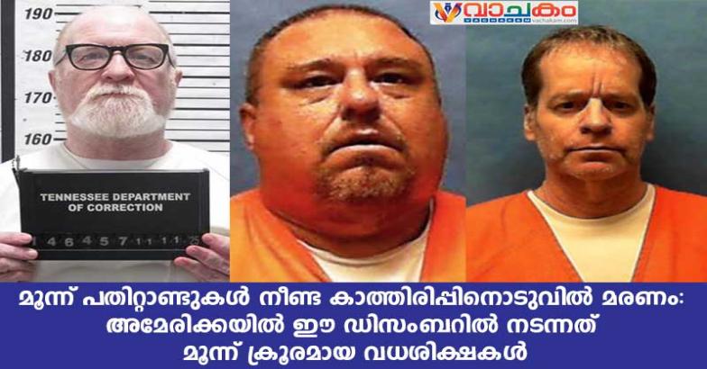 വാഷിംഗ്ടൺ: ദശകങ്ങൾ നീണ്ട നിയമപോരാട്ടങ്ങൾക്കും തടവുശിക്ഷയ്ക്കും ഒടുവിൽ അമേരിക്കയിലെ ഫ്‌ളോറിഡ, ടെന്നസി സംസ്ഥാനങ്ങളിലായി ഡിസംബർ മാസത്തിൽ മൂന്ന് കുറ്റവാളികളുടെ വധശിക്ഷ നടപ്പിലാക്കി. 30 വർഷത്തിലധികം നീണ്ട കാത്തിരിപ്പിന് ശേഷമാണ് ഇവരെ മരണത്തിന് വിട്ടുകൊടുത്തത് എന്നത് ഈ വാർത്തയെ കൂടുതൽ ഞെട്ടിപ്പിക്കുന്നതാക്കുന്നു.