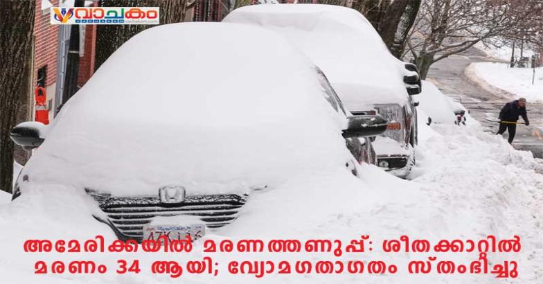വാഷിംഗ്ടൺ: അമേരിക്കയിൽ ആഞ്ഞടിക്കുന്ന അതിശക്തമായ ശീതക്കാറ്റിലും മഞ്ഞുവീഴ്ചയിലും മരിച്ചവരുടെ എണ്ണം 34 ആയി ഉയർന്നു. 14 സംസ്ഥാനങ്ങളെ ബാധിച്ച ഈ പ്രകൃതിക്ഷോഭം രാജ്യത്തെ ജനജീവിതം പൂർണ്ണമായും തകിടം മറിച്ചിരിക്കുകയാണ്.