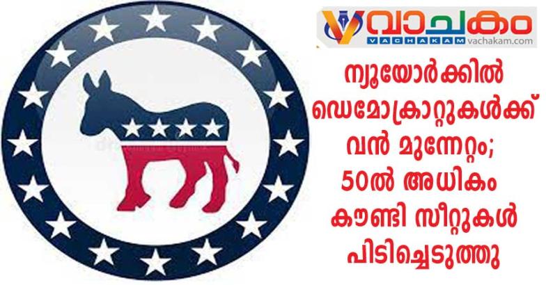 ന്യൂയോർക്ക്: ന്യൂയോർക്ക് സിറ്റിയിൽ നടന്ന പ്രമുഖ വിജയങ്ങളേക്കാൾ ശ്രദ്ധേയമായ രാഷ്ട്രീയ മാറ്റം സംസ്ഥാനത്തുടനീളം നടന്നതായി റിപ്പോർട്ട്. ഈയിടെ നടന്ന പ്രാദേശിക തിരഞ്ഞെടുപ്പുകളിൽ ഡെമോക്രാറ്റിക് പാർട്ടി 50ൽ അധികം കൗണ്ടി ലെജിസ്ലേറ്റീവ് സീറ്റുകൾ പിടിച്ചെടുത്തു.