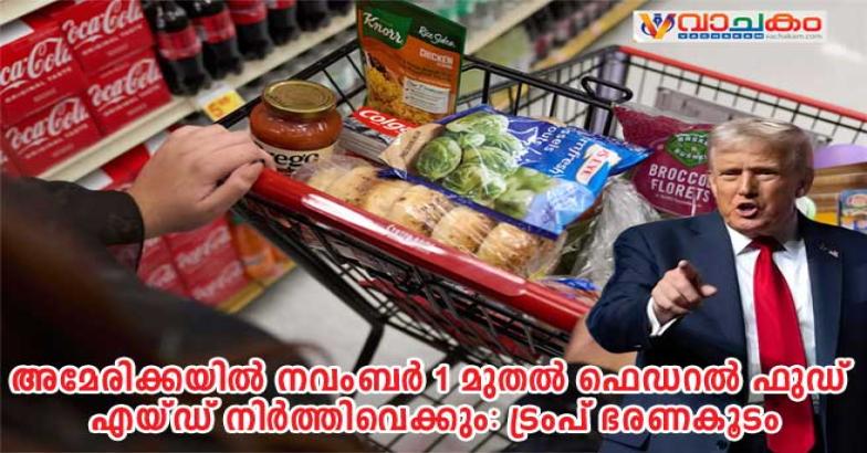 അമേരിക്കയിൽ നവംബർ 1 മുതൽ ഫെഡറൽ ഫുഡ് എയ്ഡ് നിർത്തിവെക്കും: ട്രംപ് ഭരണകൂടം