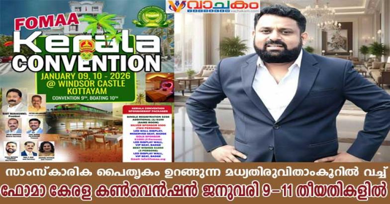 നമ്മുടെ സ്വന്തം സംഘടനകളുടെ സംഘടനയായ ഫോമയുടെ കേരള കൺവെൻഷൻ പ്രവർത്തനങ്ങൾ വിജയകരമാക്കാൻ ഏവരുടെയും സഹായസഹകരണങ്ങൾ അഭ്യർത്ഥിച്ചു കൊള്ളുന്നു.