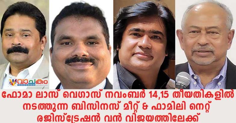 ഫോമാ ലാസ് വെഗാസ് നവംബർ 14,15 തീയതികളിൽ നടത്തുന്ന ബിസിനസ് മീറ്റ് & ഫാമിലി നെറ്റ് രജിസ്‌ട്രേഷൻ വൻ വിജയത്തിലേക്ക്