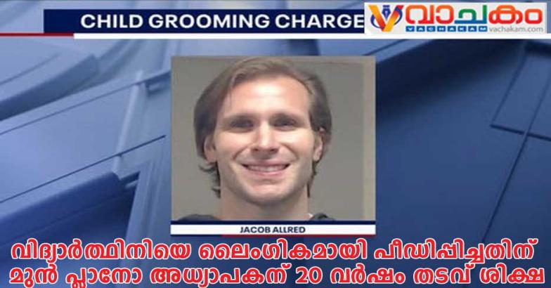 പ്ലാനോ(ഡാളസ്): വിദ്യാർത്ഥിനിയെ ലൈംഗികമായി പീഡിപ്പിച്ചതിന് മുൻ പ്ലാനോ അധ്യാപകന് ജേക്കബ് ആൽറെഡിന് 20 വർഷം തടവ് ശിക്ഷ. ഗ്രേറ്റ് ലേക്സ് അക്കാദമിയിലെ 15 വയസ്സുള്ള ഒരു വിദ്യാർത്ഥിനിയെ ലൈംഗികമായി പീഡിപ്പിച്ചതിനാണ്പ്ലാനോയിലെ മുൻ സ്വകാര്യ സ്കൂൾ അധ്യാപകൻ ജേക്കബ് ആൽറെഡിൻ 20 വർഷം തടവ് ശിക്ഷ ലഭിച്ചത്. അധ്യാപകന് അടുത്ത 20 വർഷം ജയിലിൽ കഴിയേണ്ടിവരും.