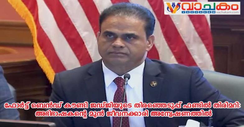 ഹൂസ്റ്റൺ: ഫോർട്ട് ബെൻഡ് കൗണ്ടി ജഡ്ജിയായ കെ.പി. ജോർജിന്റെ കേസ് വാദിക്കുന്ന അഭിഭാഷകന്റെ മുൻ റിസപ്ഷനിസ്റ്റ് അദ്ദേഹത്തിന്റെ പ്രചാരണ ബാങ്ക് അക്കൗണ്ടിൽ നിന്ന് $4,200 (ഏകദേശം 4,200 ഡോളർ) മോഷ്ടിച്ചതായി ആരോപണം.