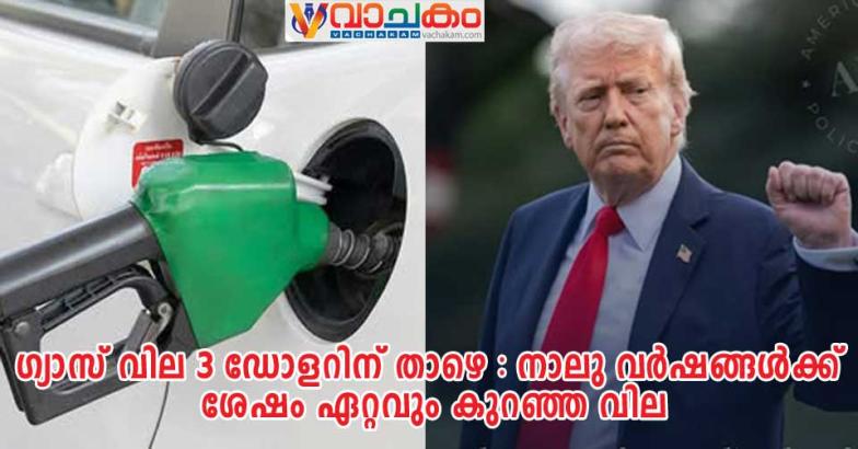 ന്യൂയോർക്: അമേരിക്കയിൽ നാലു വർഷങ്ങൾക്ക് ശേഷം അമേരിക്കയിൽ ഗ്യാസ് വില 3 ഡോളറിന് താഴെ ആഗോള തലത്തിൽ ക്രൂഡ് ഓയിൽ വില കുറഞ്ഞതാണ് ഗ്യാസ് വില 3 ഡോളർ ഓളം എത്താൻ കാരണമെന്ന് എഎഏയുടെ പുതിയ വില വിശകലനത്തിൽ ചൂണ്ടിക്കാട്ടി.