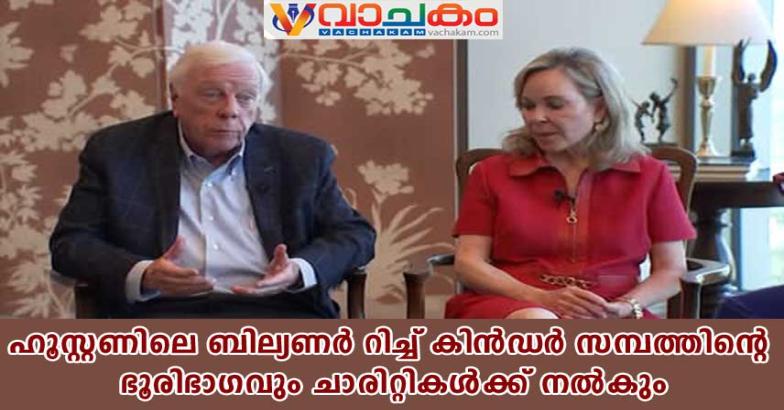 ഹൂസ്റ്റൺ: ഹൂസ്റ്റണിലെ ബില്യണർമാരായ റിച്ച് കിൻഡറും നാൻസി കിൻഡറും അവരുടെ വിലപ്പെട്ട സമ്പത്തിന്റെ 95 ശതമാനവും ചാരിറ്റികൾക്ക് ദാനമായി നൽകുമെന്ന് അറിയിച്ചു.